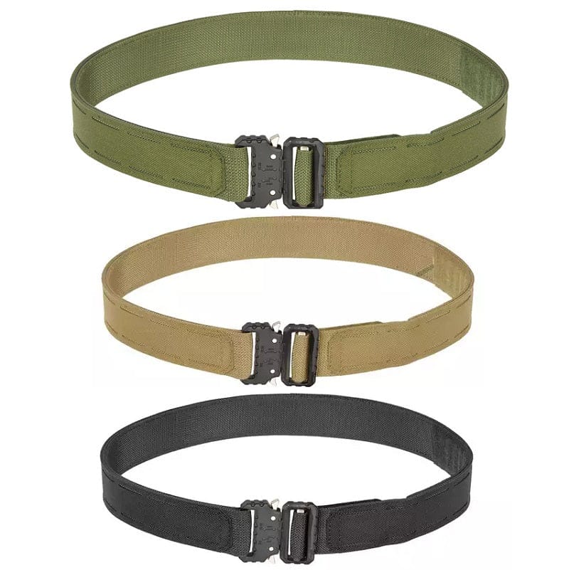 Cintura sistema Molle Laser-Cut minimalist EDC. Comoda cintura tattica con aggancio laser cut compatibile con tasche e accessori sistema molle. La cintura grazie alla sua dimensione può stare nei passanti dei pantaloni così da avere un doppio utilizzo, sia come cintura da pantaloni che cintura tattica porta tasche-accessori. Disponibile in colorazione Tan, Verde, Nera- La Cintura tattica è disponibile nelle taglie M-L-XL.