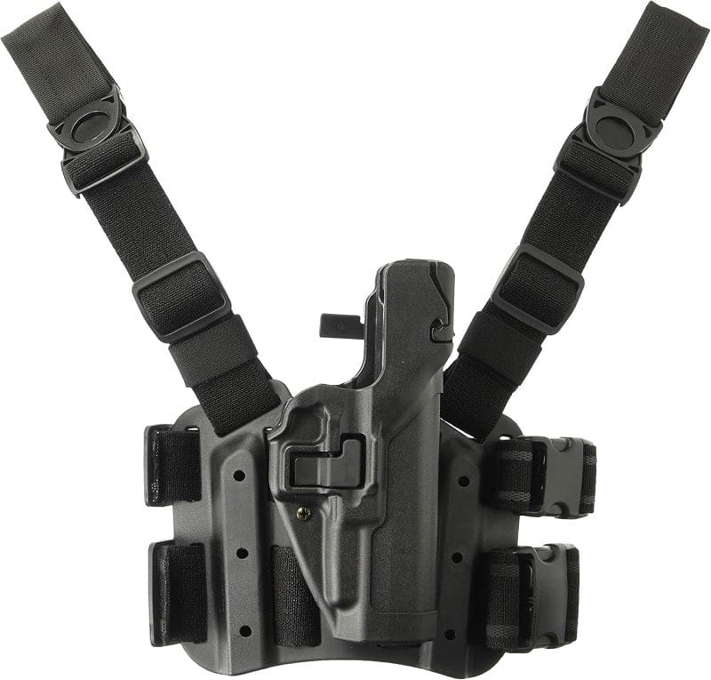 Pronta all'azione: il design della fondina facilita l'estrazione rapida, fondamentale per le situazioni di risposta rapida, garantendo agli agenti di agire rapidamente ed efficacemente. Versatile e modulare: dotata di molteplici opzioni di montaggio, la fondina supporta diverse configurazioni, consentendo l'aggancio di attrezzature essenziali come caricatori extra, torce elettriche e coltelli.