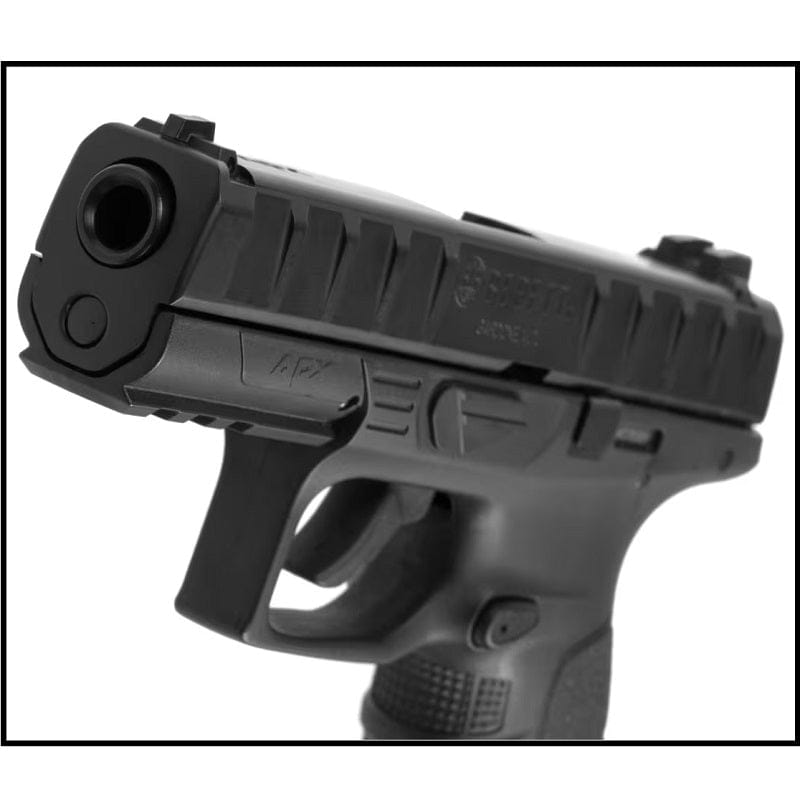 Beretta APX Co2 Scarrellante Full Metal Slide - Umarex. La pistola softair APX, prodotta da Beretta, è una replica con licenza ufficiale di una delle pistole moderne più iconiche. Questo modello, visivamente accattivante e altamente accurato, è stato creato per riprodurre fedelmente l'arma da fuoco originale. Inoltre, i marchi del produttore sono impressi sul carrello-otturatore. La Replica è alimentata a CO2, pesa circa 0,7 kg, è lunga 19 cm e offre una capacità del caricatore di 15 colpi. L'APX utilizza una canna interna lunga 106 mm, genera circa 400 FPS e funziona in modalità di fuoco semiautomatica. Questo modello presenta numerose caratteristiche, come le scanalature migliorate sul carrello-otturatore, mire classiche e ad alta visibilità e una leva di sgancio del carrello-otturatore. L'arma presenta una superficie dell'impugnatura con trama seghettata antiscivolo, che aumenta il comfort dell'utente e ne migliora la stabilità. Un'altra caratteristica è un meccanismo di disarmo funzionante, che consente di sganciare il cane senza sparare un colpo. È inoltre dotata di una slitta Picatinny per il montaggio di moduli di amplificazione della luce e designatori laser. L'APX implementa un robusto sistema di gas blowback (GBB) che imita il rinculo e l'azione del carrello durante lo sparo. Offre un'esperienza d'uso eccezionale e realistica, come sparare con una pistola autentica. Questo modello maneggevole e confortevole offre una costruzione solida, durevole e di alta qualità: il carrello è in alluminio lavorato CNC. Le guancette dell'impugnatura e il fusto sono invece stampati a iniezione in polimero. All'interno, Beretta fornisce componenti di qualità che garantiscono un utilizzo a lungo termine e la precisione di ogni colpo. Le armi Beretta sono rinomate per la loro qualità, prestazioni e longevità, soddisfacendo e superando costantemente le aspettative dei clienti. Che tu sia un professionista esperto di softair o un principiante, questa replica è un'ottima scelta per chiunque cerchi un'arma da fianco affidabile.