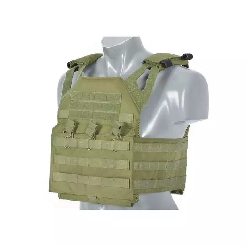 Gilet Tattico JPC Cummerbund - OD Green. Gilet Tattico in Cordura 500D dotato di attacchi molle-loop sia sul fronte che sul retro e lateralmente. Il Jump Plate Carrier ha tre tasche porta caricatori a sgancio rapido open top incluse. Tasca interna frontale con velcro. JPC è un gilet leggero e minimale progettato per la massima mobilità e risparmio di peso.