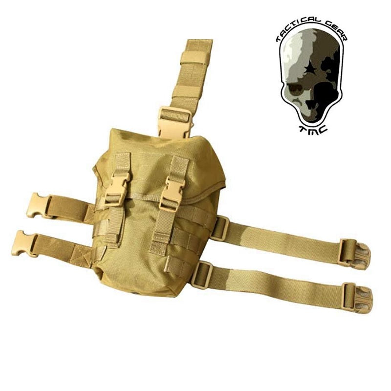 Tasca cosciale multiuso Tmc Waist Drop Tan. Borsa con possibilità di utilizzo a tracolla o aggancio a coscia. Zaino con doppia chiusura di sicurezza e sistema molle esterno per aggiungere tasche softair. Realizzato in cordura 1000Den questa sacca puo' essere utilizzata per il trasporto di accessori utili per il game o come tasca esausti per caricatori scarichi. Colorazione khaki by TMC