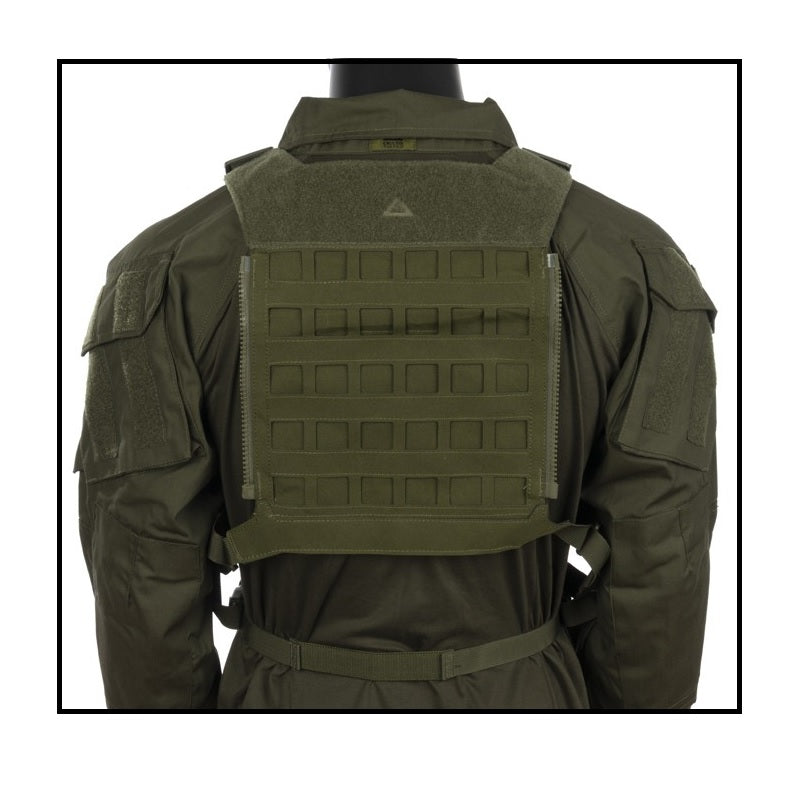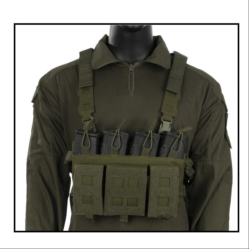 Chest Rig con Pannello posteriore Molle Force MK2 - OD. Il chest rig Force MK2 combina un'elevata capacità di carico con un design modulare avanzato. La tasca anteriore può contenere fino a 4 caricatori (M4, AK o G36), mentre il pannello posteriore modulare è adatto al montaggio di tasche e accessori con sistema molle oltre alla cerniera che consente l'attacco di sistemi a zip, offrendo completa compatibilità e versatilità sul campo. Il design tagliato al laser riduce il peso mantenendo la resistenza, mentre il pannello posteriore con velcro è ideale per patch personalizzate. Include anche tasche amministrative sul petto anteriore con MOLLE tagliato al laser e chiusure in velcro femmina, garantendo organizzazione e rapido accesso.