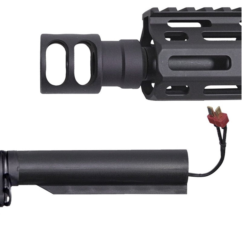 Fucile Elettrico M4 Kenji Kensei - Saigo Defense. Replica Softair realizzata in Abs e Metallo con body in fibra di Nylon e ras in Alluminio, dotata di gearbox in metallo rinforzato, sistema di cambio rapido della molla e guida molla con cuscinetti per prestazioni affidabili. Cilindro ventilato in alluminio, pistone in metallo rinforzato e molla in acciaio garantiscono durabilità. Boccole cuscinettate da 8 mm, ingranaggi in acciaio e grilletto con connettori metallici assicurano meccanica robusta. Canna interna da 6,03 mm e camera hop-up in polimero rinforzato per precisione di tiro. Il Fucile ha il grilletto elettronico e viene fornito con una potenza di 1 Joule.