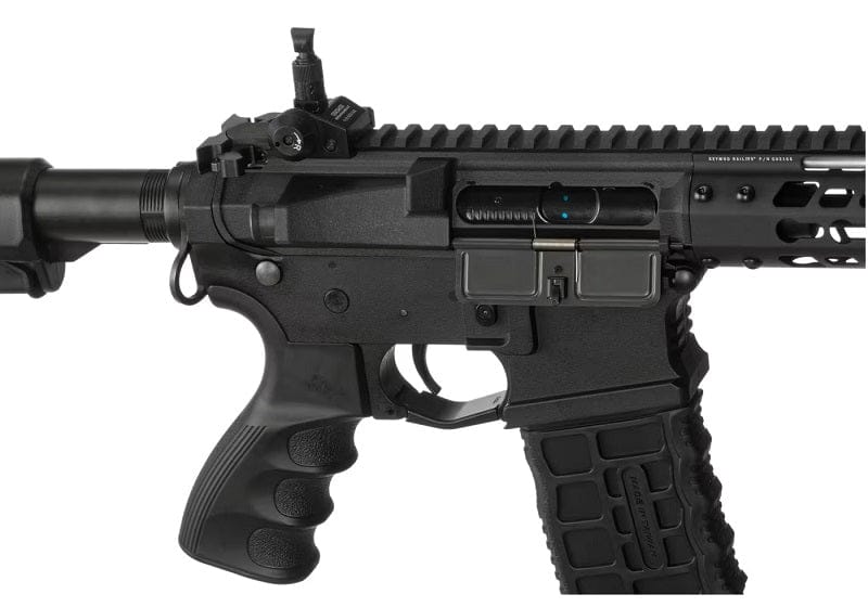 G&G Fucile Elettrico CM16 Wild Hog 9". Fantastica Replica Softair realizzata in polimero di altissima qualità con logo serigrafato originale. Ris frontale modello Keymod completamente in alluminio. Modalità di Sparo singolo/raffica (raffica 3 colpi programmabile). Scheda elettronica MOSFET e controllo elettronico del grilletto Calibro: 6 mm (0,20/0,23/0,25g) Batteria posta nel calcio. Progettato e prodotto da G&G, il CM16 Wild Hog 9" è una replica di alta qualità sviluppata nell'ambito del progetto Combat Machine. L'idea principale di CM era quella di offrire un modello accessibile, pur mantenendo un'elevata qualità dei meccanismi interni e l'utilizzo dei migliori materiali disponibili. Questa replica lunga 700/780 mm è alimentata da un caricatore a media capacità, pesa circa 2300 g e spara in modalità semiautomatica e completamente automatica. Gli elementi principali come il lower e upper receiver, l'astina e il calcio sono realizzati in polimeri di alta qualità rinforzati con fibra di vetro, rendendolo leggero ma estremamente resistente. La canna esterna, il buffer tube e altri elementi minori sono lavorati a macchina in metallo. Nella parte anteriore, troviamo un'astina Keymod in polimero con una slitta RIS nella parte superiore. Questa configurazione consente all'utente di montare diversi accessori in base alle proprie preferenze o esigenze operative.