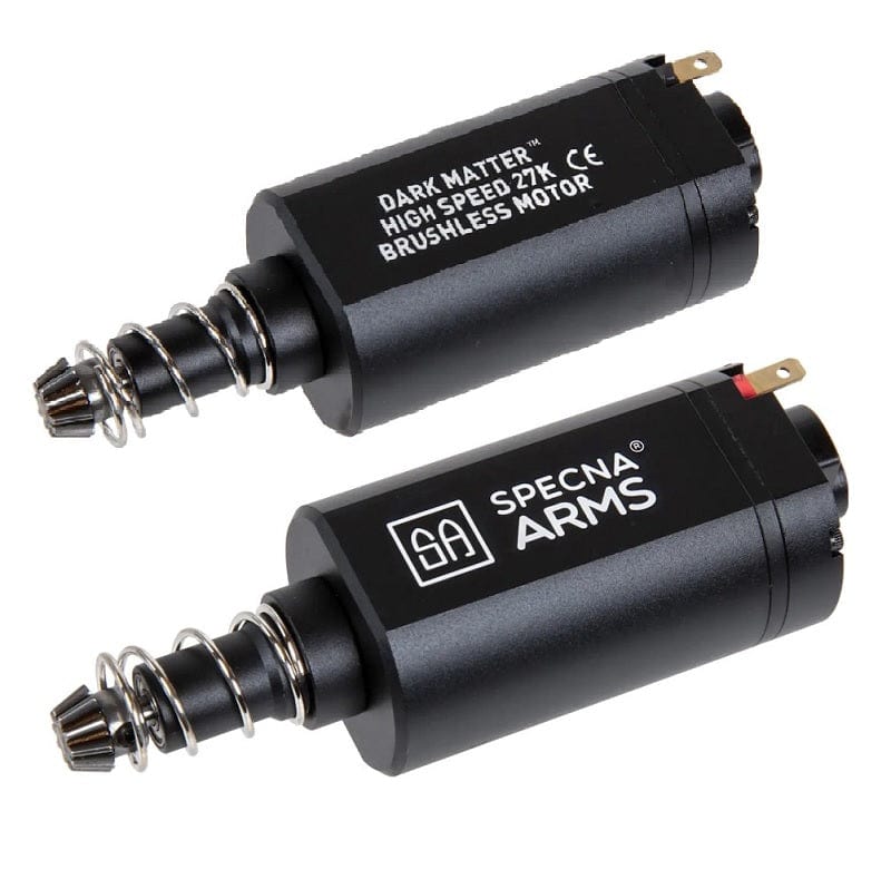 Motore Brushless Albero Lungo 27K - Specna Arms. Specna Arms garantisce prestazioni elevate con una velocità di rotazione di circa 27.000 RPM a 11,1 V. Realizzato con gabbia in alluminio 7075 e avvolgimenti in rame resistenti alle alte temperature, offre efficienza e durata superiori. Il sistema ESC integrato protegge da bassa tensione e sovraccarichi, assicurando affidabilità e protezione sia del motore sia della batteria. Il design CNC di precisione e il pignone facilmente smontabile facilitano manutenzione e installazione. Ideale per chi cerca potenza e performance durature nel softair. Scopri la potenza dei motori Specna Arms® Dark Matter™. Abilità e affidabilità senza pari in ogni scontro. Con coppia elevata, forniscono potenza e precisione di tiro eccellenti, mentre il loro funzionamento silenzioso ti consente di operare quasi senza essere notato.