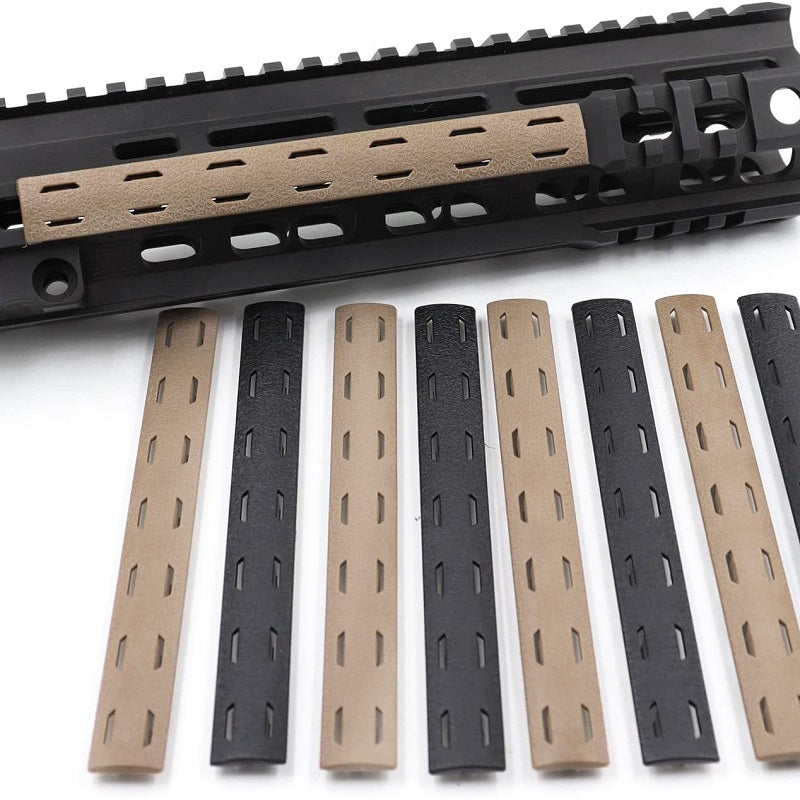 Rail Cover Copri Slitta stile M-Lok. Protezioni in gomma per slitte M-Lok che trasformano il tuo setup tattico. Set di 5 pezzi con design ergonomico e superficie antiscivolo per una presa sicura anche in condizioni difficili. Disponibili in tan (dark heart) o nero, si adattano perfettamente a qualsiasi configurazione di rail. Installazione rapida e discreta, mantengono l'estetica pulita del tuo fucile senza compromessi sulla funzionalità. Ideali per airsoft, softair e applicazioni tattiche professionali.
