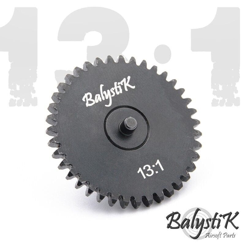 Terna Ingranaggi 13.1 Super Hi-Speed - Balystik. Realizzati con tecnologia CNC con un rapporto corto ideali per velocizzare il rof nei fucili elettrici. Solitamente utilizzato per elaborazioni hi-Speed e Super Hi Speed. Compatibili con tutti gli aeg softair.