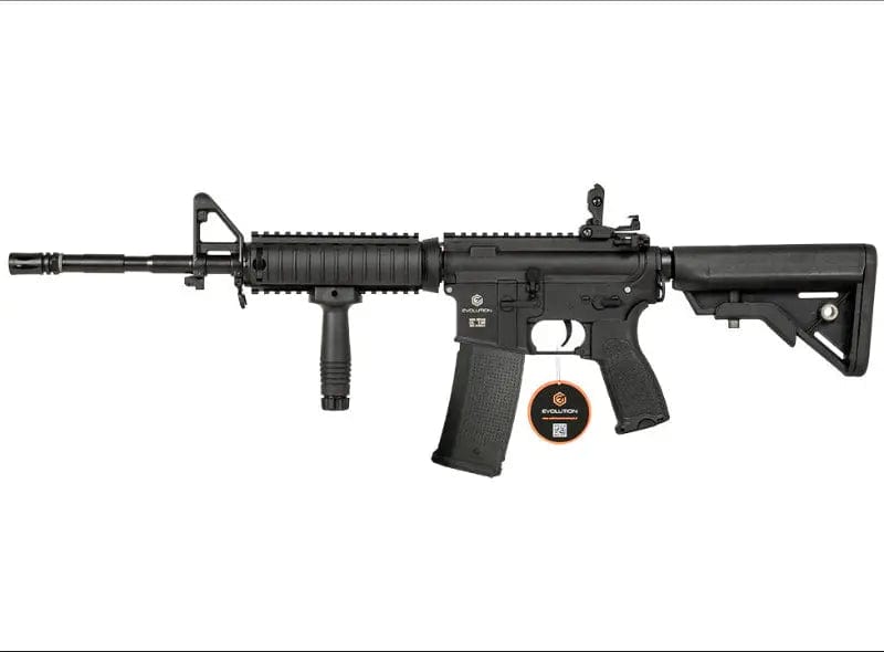Fucile Elettrico M4 Sopmod Carbontech - Evolution. Aeg Evolution Recon Superlite SOPMOD Carbontech dotato di componentistica all'avanguardia e realizzato con materiali di qualità. Nello specifico il Gearbox da 8mm con cambio molla rapido include ingranaggi rinforzati e pistone con denti in metallo.